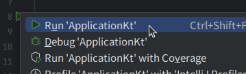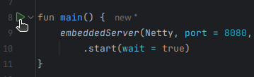 임시로 main 옆의 실행 아이콘(공식적인 명칭이 따로 있었다...! Gutter Icons)을 누르면 일반적인 코틀린 프로젝트처럼 Run Configuration이 생기면서 잘 실행된다.