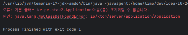 인텔리제이에서 Ktor 프로젝트 실행이 안되는 경우 - java.lang.NoClassDefFoundError