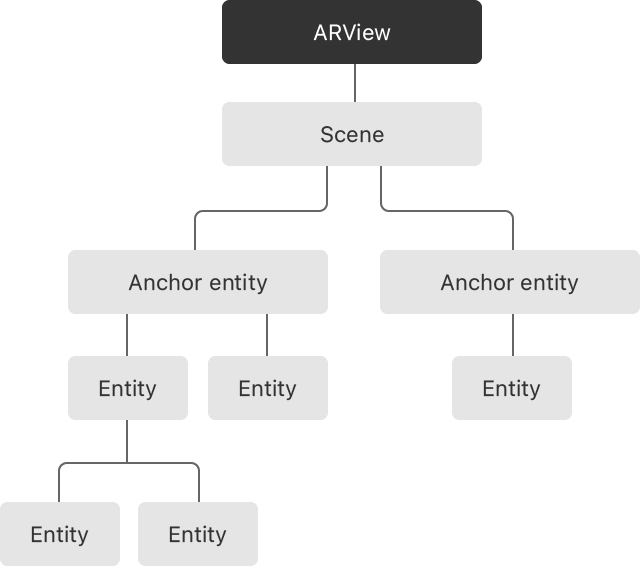 이때 ARAnchor는 RealityKit의 AnchorEntity와는 다르다. 앞에서 말했듯, ARAnchor는 ARSession에서 감지한 현실 세계의 대상의 좌표와 회전을 표현한다. 반면에 AnchorEntity는 Scene에 렌더링되는 요소를 표현하는 Entity의 하위 타입이다. Scene에 고정되어 다른 자식 엔티티 위치의 기준 점이 된다.